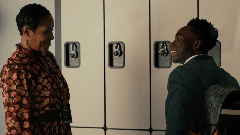 Carlton snorts some coke from his locker just before being approached by Ms. Bassin in preparation for today's mental health kickoff. Additionally, she talked Carlton up to the Princeton recruiter, who now wants to set something up, especially given his run for the Founder's Award, which would make Bel-Air Academy history, reminding Carlton that his win would be a win for all of them.